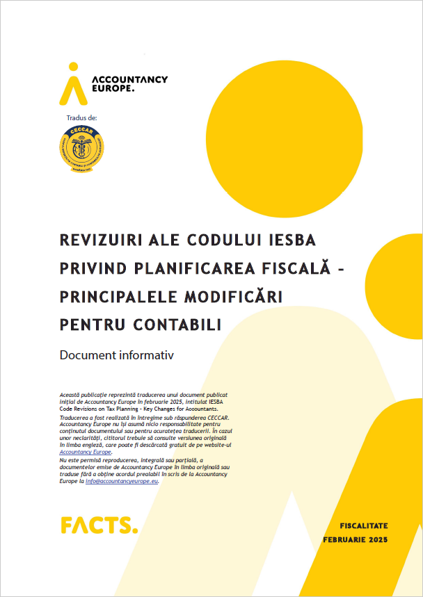 Accountancy Europe: Revizuiri ale Codului IESBA privind planificarea fiscală – principalele modificări pentru contabili. Document informativ