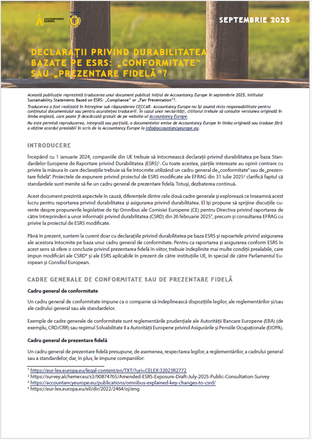 Accountacy Europe: Declarații privind durabilitatea bazate pe ESRS: „conformitate” sau „prezentare fidelă”?